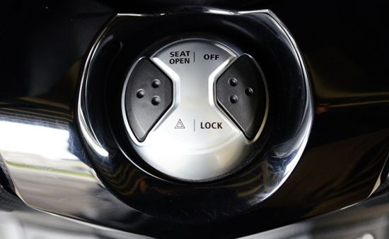 而油箱设计于坐垫前端,但有点尴尬的是,都已经采用免钥匙系统,却还必须使用芯片锁上的传统钥匙开启油箱盖,这点算是比较可惜的部分。