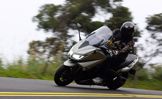 改款的2015 YAMAHA TMAX 530在引擎虽然没有提升数据,但在悬吊以及制动性能都有显著提升的感受,与正叉版本相比之下,TMAX 530的制动效能明显改善许多,而前叉改用倒叉,对于弯中支撑性也好上许多,不再像以往是较为舒适的软阻尼感,而是类似跑车般较为硬朗,路面传递明显的感受。