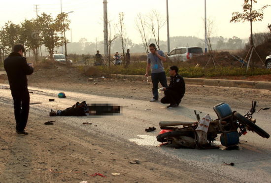 2015年2月12日,广西鹿寨县,一男子驾驶摩托车行驶途中突然发生爆炸,造成人和车飞出10余米,驾驶人当场死亡。