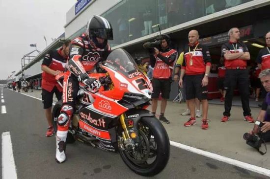 在刚刚过去的2015 WSBK澳大利亚菲利普岛站的公开赛中,杜卡迪车手Chaz Davies 战绩不俗,连续获得了两个第三名的成绩,可谓是为杜卡迪团队开了一个好头。然而,另一位选手Davide Giugliano比赛中不行发生事故导致背部受伤,送往墨尔本当地的一家医院治疗,情况稳定后将会返回意大利进行进一步检查。由于他的伤势不得不退出比赛,来自澳大利亚的老将Troy Bayliss(特洛伊-拜里斯)临危受命再度出山,伴随Aruba.it Racing 杜卡迪WSBK团队共同完成了菲利普岛站的比赛。