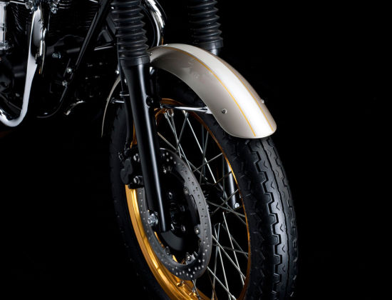 而且可以为客户定制私人专属LOGO,阳极氧化喷涂的金色轮毂,白色和褐色混搭的坐垫。这款W800限量版只生产300辆,每辆车均配有“特殊身份”铭牌,销售价格约合人民币47000元。