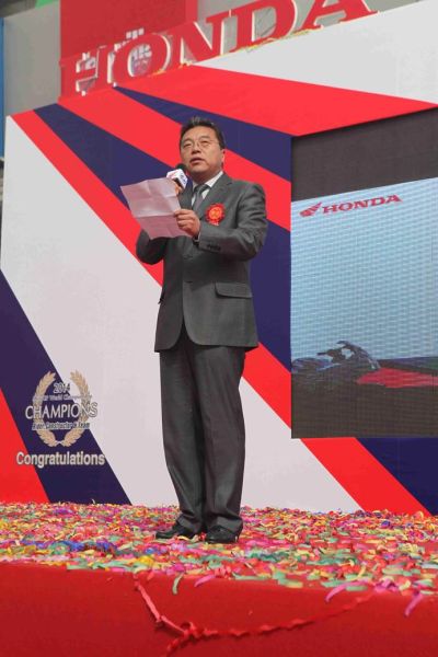 3月28日上午9时38分,首发仪式正式开始,新大洲本田摩托有限公司首席副总经理杜岩先生率先致辞,他在演讲中表示:“新大洲本田的CBR300R定会给广大用户带去不一样的驾乘体验,随着中国中排量乃至大排量摩托车市场的成熟和需求量的扩大,新大洲本田将不遗余力的将本田更多更好的产品引入中国市场,也会加强自主研发能力,力求将本田更多的海外机种引入国内生产和销售,让广大用户实现喜悦更大化!”