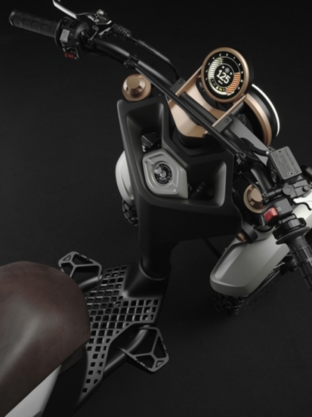 雅马哈03GEN-x的设计主题是交融,以Scrambler的古典文化和最先进的Leaning Multi Wheel(LMW)结构交融出超越时代的崭新设计,把号称第三种交通工具LMW特色本质的车体框架大胆地呈现出来,再添加上充满现实感的质感。