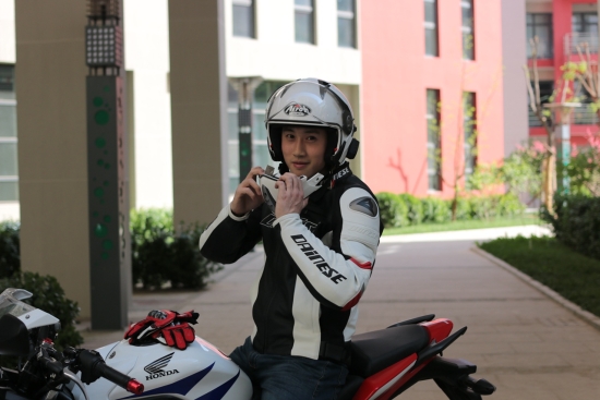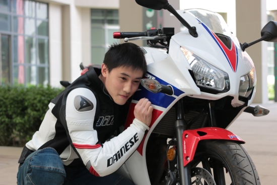 大培子如期赴约来到中国传媒大学西校区,见到了王天石本人和他的爱车-本田CBR300R。闻名不如见面,王天石本人是一个非常帅气的小伙子。但与大培子(玉树临风、才高八斗、学富五车)相比还是有点“相形见绌”的。此语一出,一种“心虚”的感觉涌上心头……