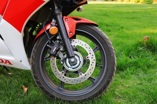 6. CBR300R后制动的实际效果相比其灵敏的前制动来说,显得更为稳定。由于部分新手骑士存在有后制动使用过度的错误驾驶习惯,所以本田CBR300R稳定的后制动并不是一个缺点。