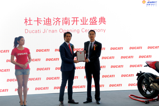 齐鲁大地蕴藏着历史悠久的文化——意大利知名摩托车品牌杜卡迪将在这块土地上掀起一股红色激情。5月23日,意大利高端摩托车品牌杜卡迪闪耀历史名城济南,授权展厅当天在济南市历下区正式举行了隆重的开业仪式。杜卡迪中国及杜卡迪济南高层、大批当地重要媒体和车迷出席了本次盛典,杜卡迪济南的成立也标志着杜卡迪在中国已经建立了十家经销商。杜卡迪的官方合作品牌 Shell 壳牌爱德王子摩托车机油也对活动的顺利举办提供了大力的支持。