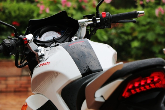 要说到无界王最大的亮点,自然离不开它的动力性。无界王所搭载的150cc四气门水冷引擎在目前国内同排量级别引擎中,不论是技术领先度还是动力表现都是最优秀的。在都市试驾过程中,大培子发现想要体验无界王的动力激情,你只要将引擎转速提升到中、高转速段,随着转速的拉高无界王便开始“躁动”起来,而且动力呈线性输出。60-100公里/小时这一时速段是无界王的动力强势区域,但是要说的是,无界王也不是为高转速而生的,可能是由于环保要求无界王的转速被锁定在一万转,到达峰值转速后无界王被“闷住”了,有一种有力却无法释放的驾驶感受,但是120+公里/小时(表显)的表现对于都市驾驶而言已然是绰绰有余了。也正是无界王特有的动力表现和可控性,让无界王更加适于都市驾驶,即使激烈驾驭也是得心应手。排气声浪也较为厚重,富有相当的运动激情。