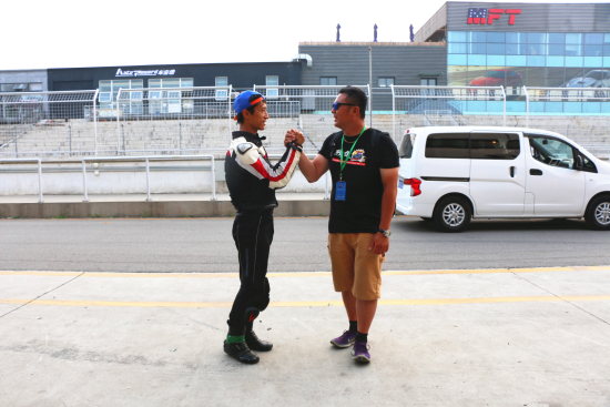 不是每位学员都拥有良好的外语听说能力,那么翻译的重要性就显现出来了,这是一个非常重要的工作环节,是教练与学员沟通的主要纽带,关系到教学内容的精准性。反正大培子是见识过不少“翻”译,那“翻”出来的内容说驴唇不对马嘴那是有点过激了,让学员成为“二丈金刚”(摸不着头脑)的情况倒是屡见不鲜。本次CSS驾驶培训的翻译人员全部来自台湾恒典团队,Dylan教练、每位赛道教练、场控、课程控管等外籍工作人员都配置了各自的翻译,而且所有翻译人员都很专业,让听者不再处于“蒙懂”状态,所翻译的内容至少大培子全都听懂和理解了。只有“传奇老头”Keith没有专门配置翻译人员,因为加菲猫(陈琮闵)“如影随形”,能同时得此二人授业解惑是件很有荣幸感的事哦。