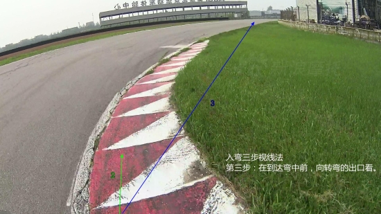 2.在即将到达入弯点前,向你要去的方向看(弯中),以要去的地方为目标。