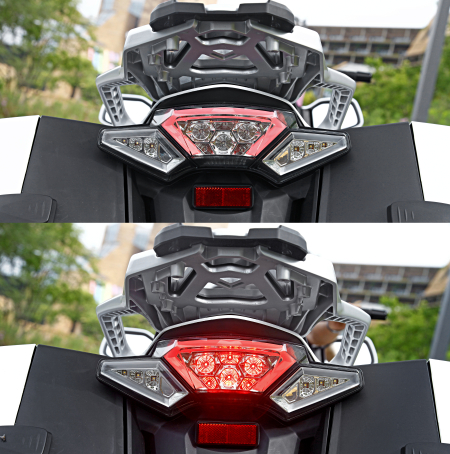 国宾民用版LED光带尾灯更加时尚,层次感分明。而CF650TR的尾灯就像是被人在PG上狠狠撞了一下,瘪平且呆板。