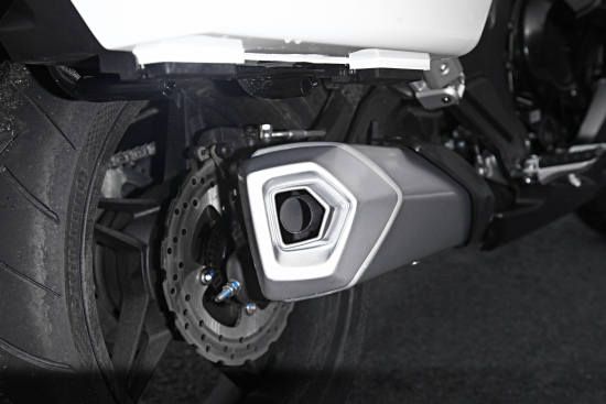 有件搞笑的事,在很多资讯上都标称CF650TR-G配置了对向四活塞卡钳,明明是双活塞卡钳,双制动泵就是2*2=4吗?那“对向”又怎么解释?难不成是两片刹车片夹合制动盘或左右双泵呈相对排列就叫对向四活塞卡钳?CF650TR-G国宾车民用版所搭载的西互制动系统在使用中的效果确实是可圈可点的,而且ABS防抱死还设有开闭按键(位于仪表板左下方的圆形按键)和工作状态指示灯,这是很贴心的设计。