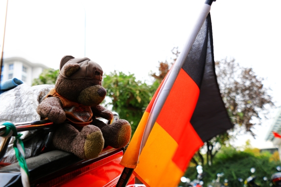 2015年10月25日,北京,朝阳,哈雷戴维森北京。首支德国哈雷骑行团从魔都上海启程,历经16天,骑行2200公里,穿越10座城市,最终抵达帝都北京!