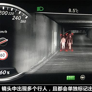 其实关于两种夜视,还有一个最大的区别:主动发射式探测距离为150-200米,而被动接收式则能到300米以上,如果在高速公路上,时速120公里/小时,后者能比前者提前5秒发现行人和障碍物。