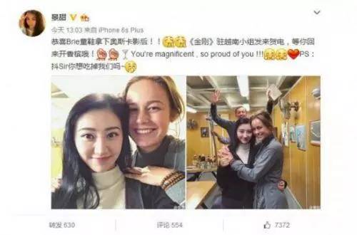 还有当国内的某些女星拼尽全力想去好莱坞露个脸时,她却已经在和世界级男神抖森合影;