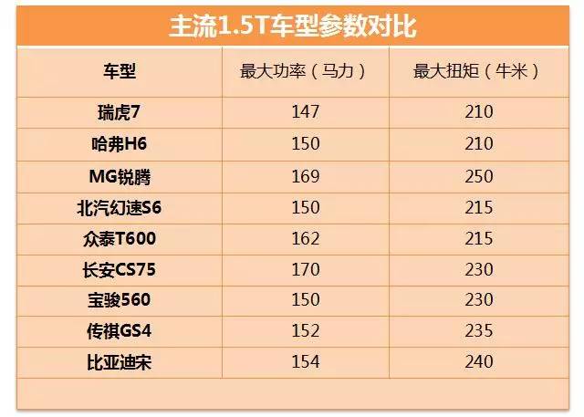 下面是主流自主1.5T发动机车型的动力数据对比