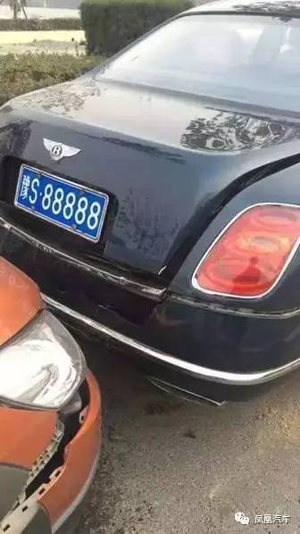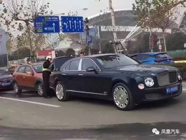 “3辆车都不同程度受损,宾利慕尚的后保险杠裂开了,尾箱门有些变形。”徐警官说,“宾利慕尚还能动,后面两辆车动不了了,最后是用拖车拖离的。”被追尾的宾利慕尚悬挂河南牌照,后面5位数同样很“豪”,为“88888”。