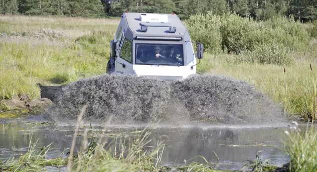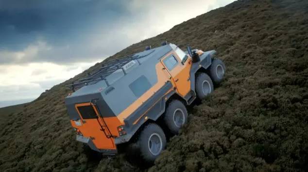 Shaman有两种转向模式:一种后面四个轮子和前面四个轮子采用相反的转向方向,从而获得更好的灵活性。另一种就是让8个车轮对准同一个角度,可以向螃蟹一样“横着走”,从而完成地球上最疯狂的“平行停车”。