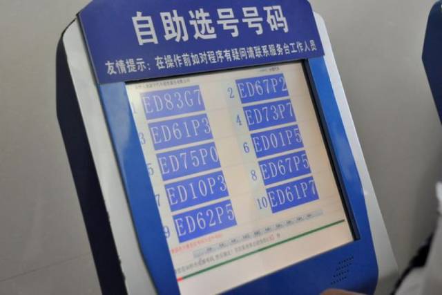 2、在车管所利用选号机自动选取(一般是10选1)号牌号码。