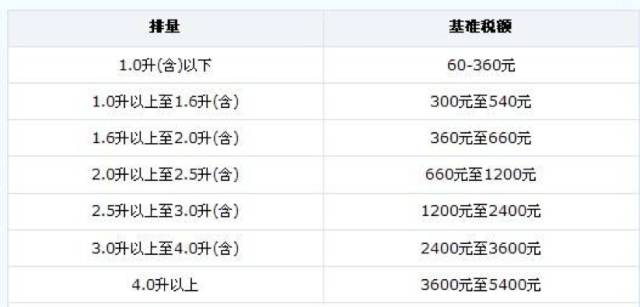 1.6-2.0L(含)480元;2.0-2.5L(含)900元;