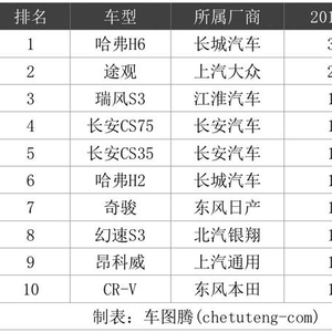 2015年,SUV销量排行榜Top10是这样的——