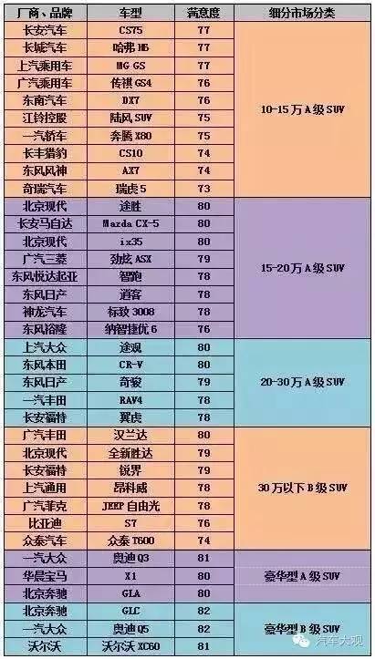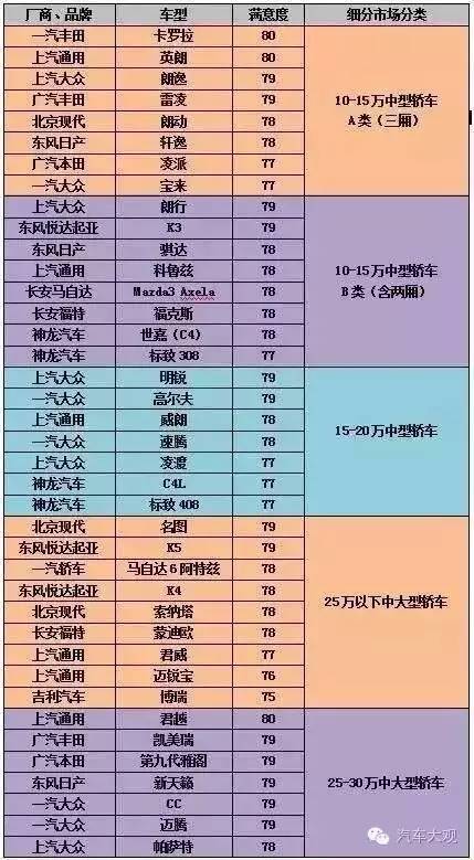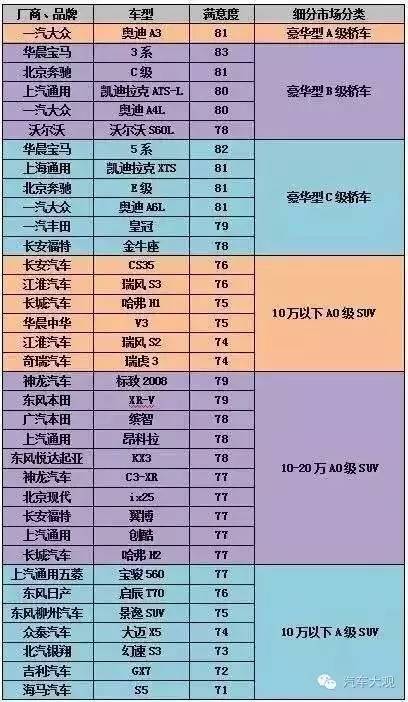以上就是自2002年开始,中国质量协会、全国用户委员会持续15年组织开展中国汽车行业用户满意度测评(CACSI)所给出的比较权威的2016汽车测评排行的部分车型。