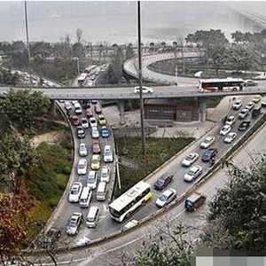重庆道路标线之复杂,已经到了不可想象的地步。很多道路都是由款车道突然变成短车道,不堵车才见鬼。比如下图所示,9车道13排车,一起挤进3车道。突然想象自己居住城市的交通,感觉棒棒哒!