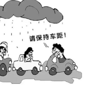 雨天由于路面比较滑,制动距离会比天晴的时候大,所以雨天行车距离一般要比晴天增加一倍。这样即便前方车辆紧急制动,也会有充足的距离避免追尾。同时建议,在雨天行车车速尽量控制在每小时40到60公里。
