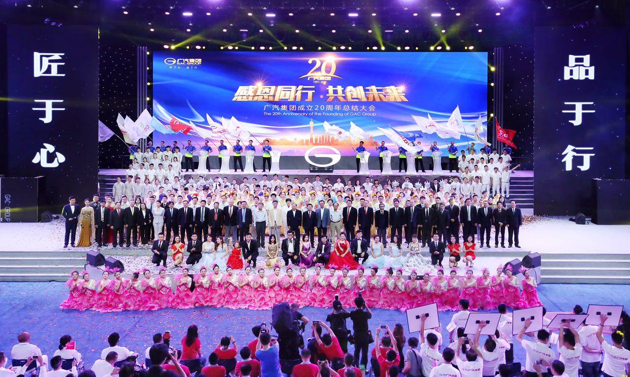 2017年6月3日,以“感恩同行•共创未来”为主题的广汽集团成立二十周年总结大会在广州市天河体育中心体育馆隆重举行。广汽集团董事长曾庆洪、总经理冯兴亚及广汽集团员工代表、投资企业及合作伙伴代表、离退休干部及员工代表、新闻媒体代表等逾4000人出席,共同见证广汽成立二十年来的成果。