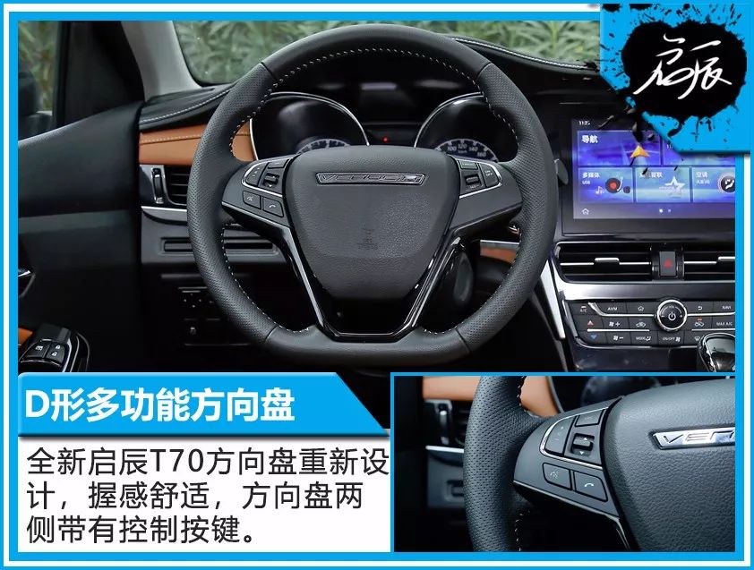 为了提供更高品质的移动出行生活,全新启辰T70内饰独创驾驶员导向飞航式驾舱设计理念,让全新启辰T70的驾驶者拥有头等舱般的高格调享受;同时,在面板、车门等驾驶者及乘客容易触及之处,大面积覆盖软质材料;皮质座椅也采用了与高端车型一致的钻石衔缝技术,和轻奢风格的真线缝制工艺,显得质感十足;而同级独有的多功能D形真皮方向盘,则切实地将运动感和安全性实现了完美结合。