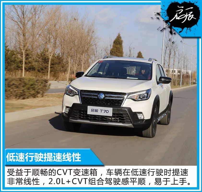 在拥堵路段全新启辰T70给人一种不急不躁的驾驶体验。2.0L+CVT组合动力顺畅,易于新老司机上手。受益于顺畅的CVT变速箱,车辆在低速行驶时提速非常线性。在60km/h时速下,发动机转速不超过1500转,车内基本听不到发动机的轰响。