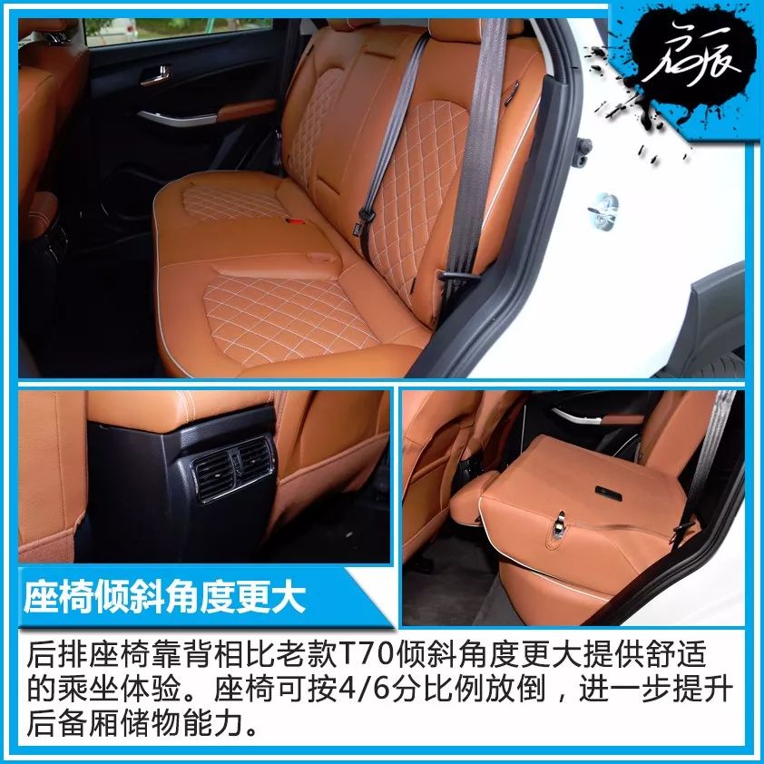 全新启辰T70主驾驶座椅拥有4向电动座椅调节按钮,副驾驶为传统式座椅调节。新车车内储物空间丰富,可满足用户日常使用。全新启辰T70后备厢容积为534升,当后排座椅靠背按4/6比例放倒后,后备厢对角线长度达到2米1。得益于后悬挂采用倾斜设置的减震器,让车内后备空间非常规整,领先大多数同级竞品。