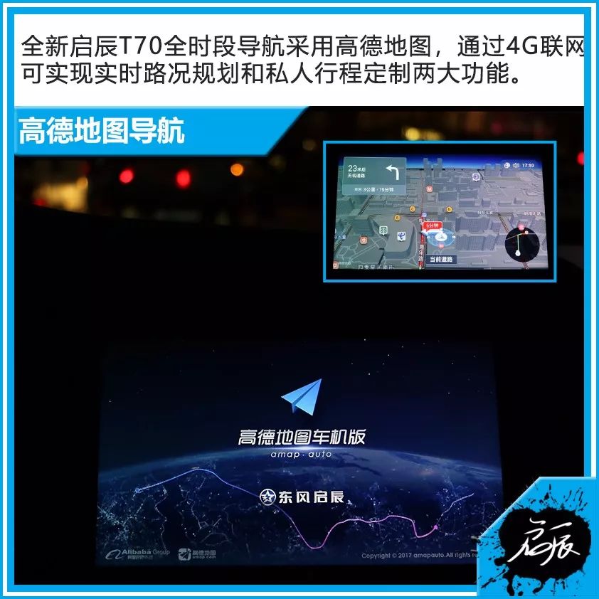 另外,这套语音交互系统除了一般功能项的开启,还可与其进行有趣的对话,比如“讲个笑话吧”、“我帅不帅/美不美”等问题,它都会实时告诉你想要的答案,在驾驶途中极大增加驾乘乐趣。全新启辰T70全时段导航采用高德地图,通过4G联网可实现实时路况规划和私人行程定制两大功能。新车还配置了车辆只能安防系统,能够做到实时定位追踪和手机提醒,用户还可以通过手机App远程控制系统,对车辆进行监控。