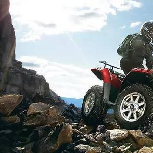 ATV——All-Terrain Vehicle(全地形车)虽然有4个轮子,但跨骑的坐姿和车把转向方式,使它理所当然被划归在摩托车领域。当然,既然是“全地形”,就注定了它天生野性,越野道路或无路的野外才是它的舞台,所以和越野摩托车一样,颇具观赏性。