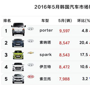 大家好,本期《韩系动向》带来2016年5月份韩国车市的销量情况。《韩系动向》每个月固定更新一篇,是目前中国唯一全面介绍和系统分析韩国车市销量的连载文章。我写韩系动向的目的有三个:第一,让喜欢韩国汽车的朋友,了解韩国当地热销车型和市场走向;第二,因为每个月出一篇,因此累积起来就成了重要的数据,可以帮助那些需要专业数据却寻找不到的机构或者需要写相关论文的学生;第三,希望能够帮助一些想打入韩国市场的汽车厂商或者零部件供应商,让他们时刻了解韩国车市的最新动态。