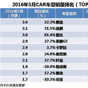 从车型层面来看,5月份销量排名TOP10的车型依次是:朗逸、捷达、英朗GT、卡罗拉、轩逸、速腾、福睿斯、朗动、Polo和桑塔纳;销量依次为:3.6万辆、 3.1万辆、3.0万辆、2.9万辆、2.9万辆、2.8万辆、2.1万辆、1.8万辆、1.7万辆和1.7万辆。1-5月份累计销量排名TOP10的车型依次是:朗逸、速腾、捷达、英朗GT、卡罗拉、桑塔纳、轩逸、福睿斯、朗动和帝豪;销量依次为:21.1万辆、14.3万辆、14.1万辆、13.7万辆、12.6万辆、12.5万辆、11.4万辆、10.6万辆、9.2万辆和9.0万辆。