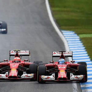#1:维特尔自己一个人驾驶。他完全遵守了行车线路。佩雷兹也是在遵守他的行车线路,但是比维特尔速度要快。马萨速度最快,并且已经准备好通过晚刹车来超越佩雷兹。