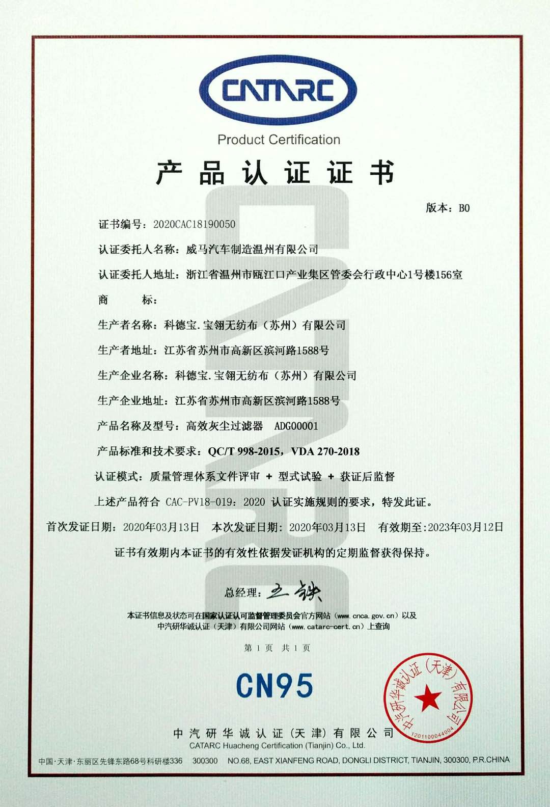 本月,威马汽车获得了中汽研CATARC最新发布的CN95等级标准认证。更新的空气净化系统让车辆成为了一个可移动的“氧舱、安全舱”,为乘客提供更加优质的车内空气环境。