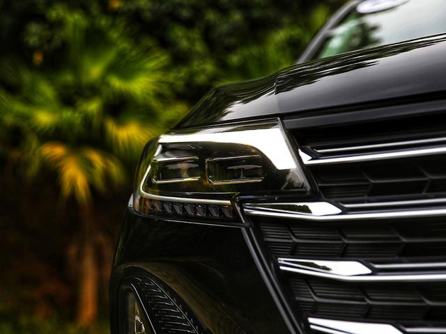 用更考究的细节设计,比如钢琴按键式的转向灯设计,前保险杠两侧的不规则格栅设计,前唇粗壮的镀铬饰条点缀,来提升整车的精致感。