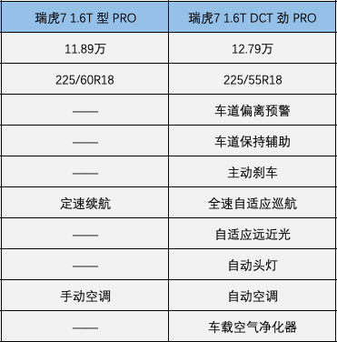 2.瑞虎7自动挡车型方面,1.5TCVT精英版(10.19万)和1.5TCVT豪华版(10.99万),价格差了8000元,配置差异前排侧气囊、定速巡航、远程启动、7英寸液晶仪表、主驾驶电动调节、语音识别系统、后排中央扶手、后视镜加热、GPS导航、多媒体系统、6喇叭扬声器、全车一件升降、后视镜加热等配置,肯定是加8000元买豪华版更合适。