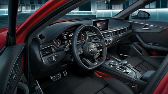 进入内饰,在门板、中控台和换挡区域都出现了性能粉喜欢的碳纤维装饰板,平底运动风格的风向盘,带有红色缝线和“S”标识,换挡杆后方同样出现了红色条纹搭配银色饰板的“S”标识。A4L高配车型上的12.3英寸液晶仪表盘和8.3英寸悬浮式中控屏在S4身上同样不会缺席。