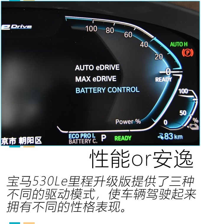 MAX eDRIVE:此时系统根据当前电池剩余情况尽可能的用纯电行驶,在这种模式下车辆的最高时速被限制在 140km/h(该模式下kick down即油门到底即会取消MAX eDRIVE,自动切换到AUTO eDRIVE)。