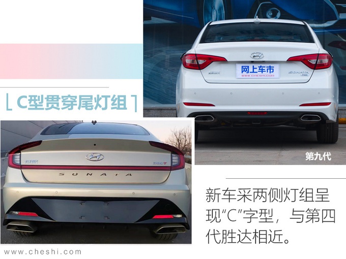 第十代索纳塔最早在2019年4月上海车展期间发布,也是北京现代今年最为重磅的轿车。新车给人一种颠覆式的改变,外观设计完全没有现款的影子,针对外观设计进行了大改,狭长的大灯组内部采用四颗颗粒状灯源设计,“C”型日间行车灯更具特点。尾部采用时下流行的贯穿式尾灯设计,两侧灯组呈现“C”字型,与第四代胜达 (配置|询价)相近。