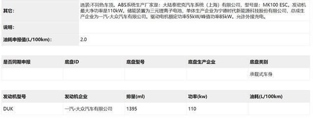 新车在动力上搭载的是1.4T涡轮增压引擎与电机组成的插电式混合动力系统,1.4T引擎最大功率110kW(150Ps),电动机其最大功率85kW(116Ps),传动系统匹配的是7速双离合变速箱,电池采用的是来自宁德时代的三元锂电池,新车工信部申报油耗仅为2.0L/100km。