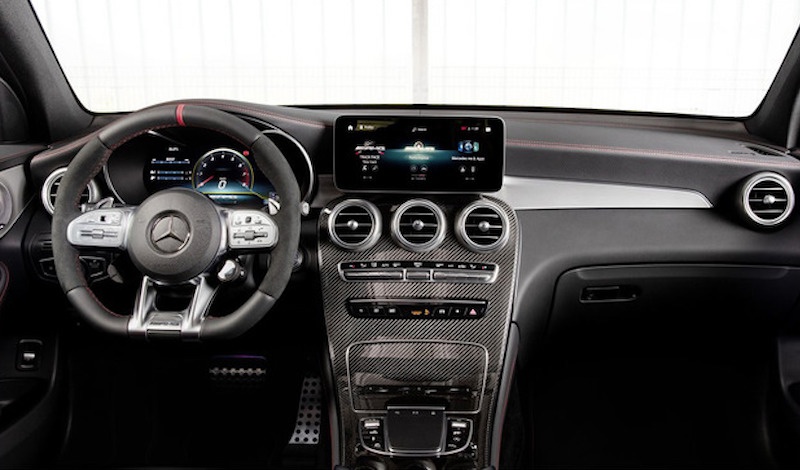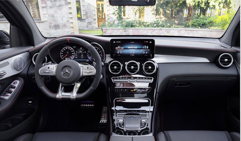 内饰方面,新款SUV的内饰颇具运动风。12.3英寸全液晶仪表盘搭配10.25英寸触控显示屏,提升了科技感。采用了大量的黑色ARTICO人造皮革以及DINAMICA微纤维进行装饰,增添了质感。AMG经典的多功能方向盘搭配运动型座椅,运动前卫。新款轿跑SUV与新款SUV设计布局相同,但采用了纯黑色中控饰板搭配红色的缝线以及红色安全带的点缀,更具运动感。