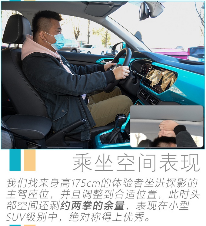 针对网友口中的“国人喜爱大空间”观点,我并不否认,但是身为小型SUV的探影乘坐空间表现如何?是否会如他所说的“死路一条”,我们找来了身高175cm的体验者。模拟实际乘坐场景来回应该网友的观点。