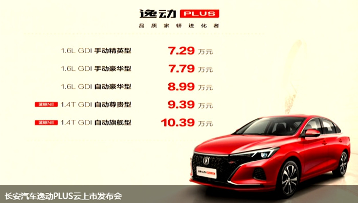 根据发布会消息,新车长安逸动PLUS的售价区间为7.29-10.39万元,共计5个版本,其中1.6L的版本有3款,售价区间为7.29-8.99万元;1.4T版本有2款,售价区间为9.39-10.39万元。值得提出的是,新车长安逸动PLUS并不是长安逸动的简单替换车型,在后续的时间里,这两款车将会同堂市售,关于这点了解长安家族PLUS系列的人应该不会觉得奇怪。