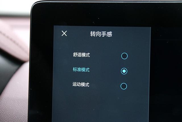 另外转向助力分三级调节,在标准模式下手感已经较轻了,还可选择更为轻盈的舒适模式和稍重一些的运动模式,但是这调节只能在中控屏幕当中去设置。