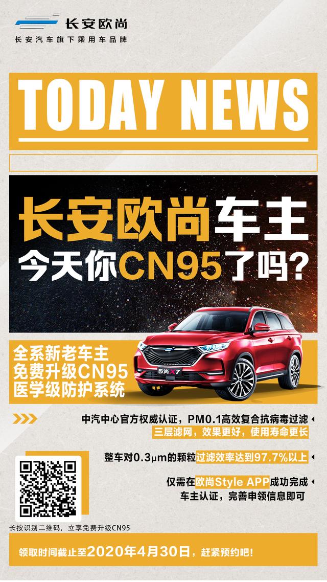 疫情爆发时期,长安欧尚更展现出作为一个企业应有的担当以及对消费者的诚意与用心,,斥资5亿元,全力打造车载CN95医学级防护系统,即日起至4月30日,全系车型新老用户均可免费升级。并且还为受疫情影响而不能顺利提车的消费者,延续早前已截止的等车红包政策,让消费者继续享受每天150元的等车红包,安心等车。