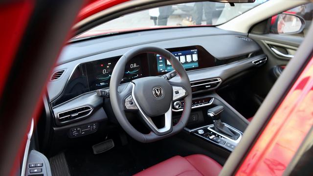 逸动PLUS内饰采用环抱式座舱设计,最吸睛的部分在于10.25英寸双联屏,设计师别有用心的将中控屏向驾驶席侧倾了10度,能够保证消费者快速读取信息的同时,操作也得心应手;另外,逸动PLUS营造出了轻奢感,软包材质以及精致按键带来了同级少有的品质感,双联屏带来影院级IMAX沉浸式信息读取体验,不夸张的说,是轩逸 (配置|询价)、朗逸、思域等合资产品给不了的。