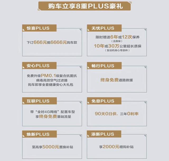 逸动PLUS官方推出购车8重PLUS好礼,包含下订666元抵6666元,限时赠送6年或12次保养,免费升级PM0.1级符合抗菌抗病毒空气过滤器,终身道路救援,三年0利息,终身免车载流量,至高5000元置换补贴以及2000元增购补贴。
